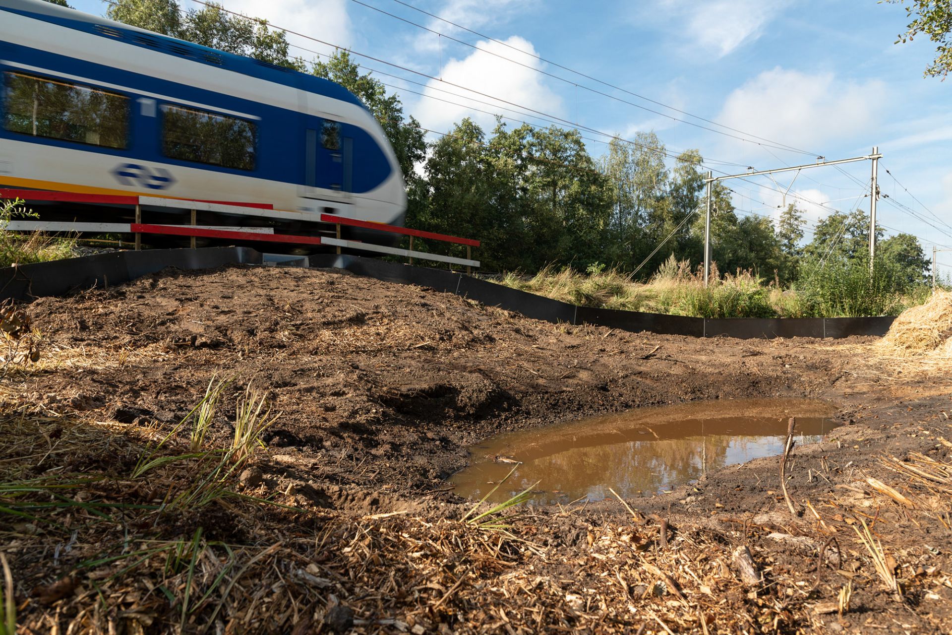 Omdat het spoor in natuurgebied Naardermeer een enorme hindernis voor verschillende soorten amfibieën en reptielen vormt, ontwikkelden wij een innovatieve faunapassage. Met succes: kleine dieren als ringslangen, verschillende kikkersoorten, watersalamanders en zelfs dassen kunnen nu veilig het spoor kruisen. Daar maken ze veelvuldig gebruik van!